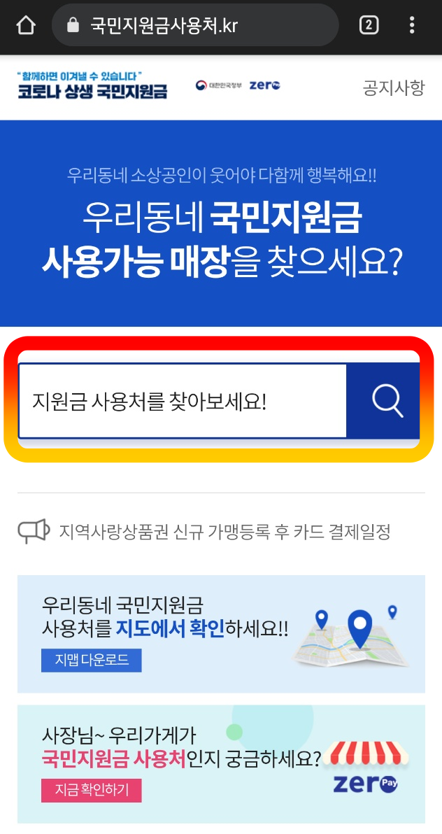 국민지원금 사용처 안내 - 메인