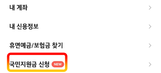 카카오뱅크의 경우, 어플의 국민지원금 신청 메뉴를 클릭해 신청할 수 있습니다.